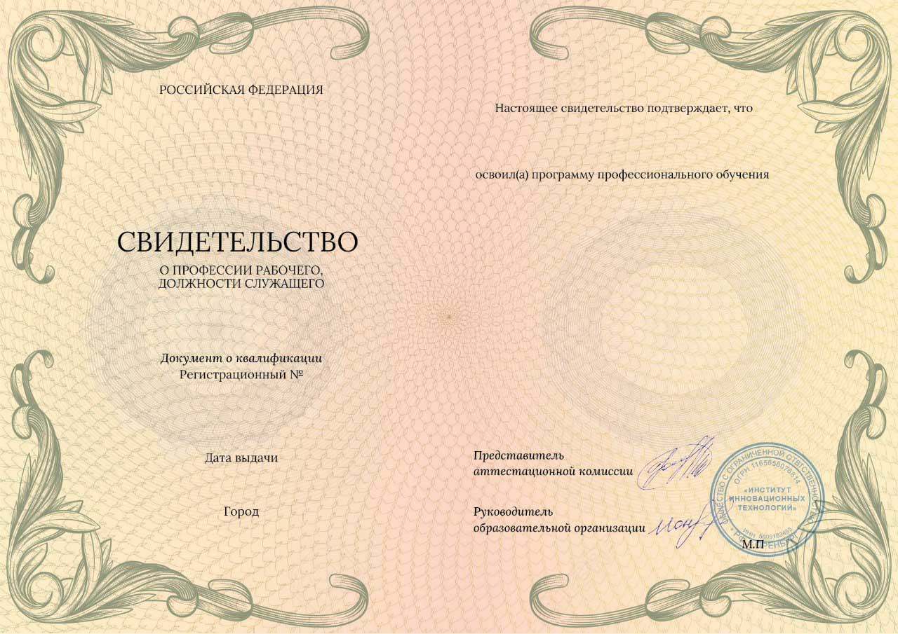 После успешного завершения курса слушатели получают корочки, свидетельство или удостоверение, что позволяет официально подтвердить профессиональные навыки и повысить конкурентоспособность на рынке труда.